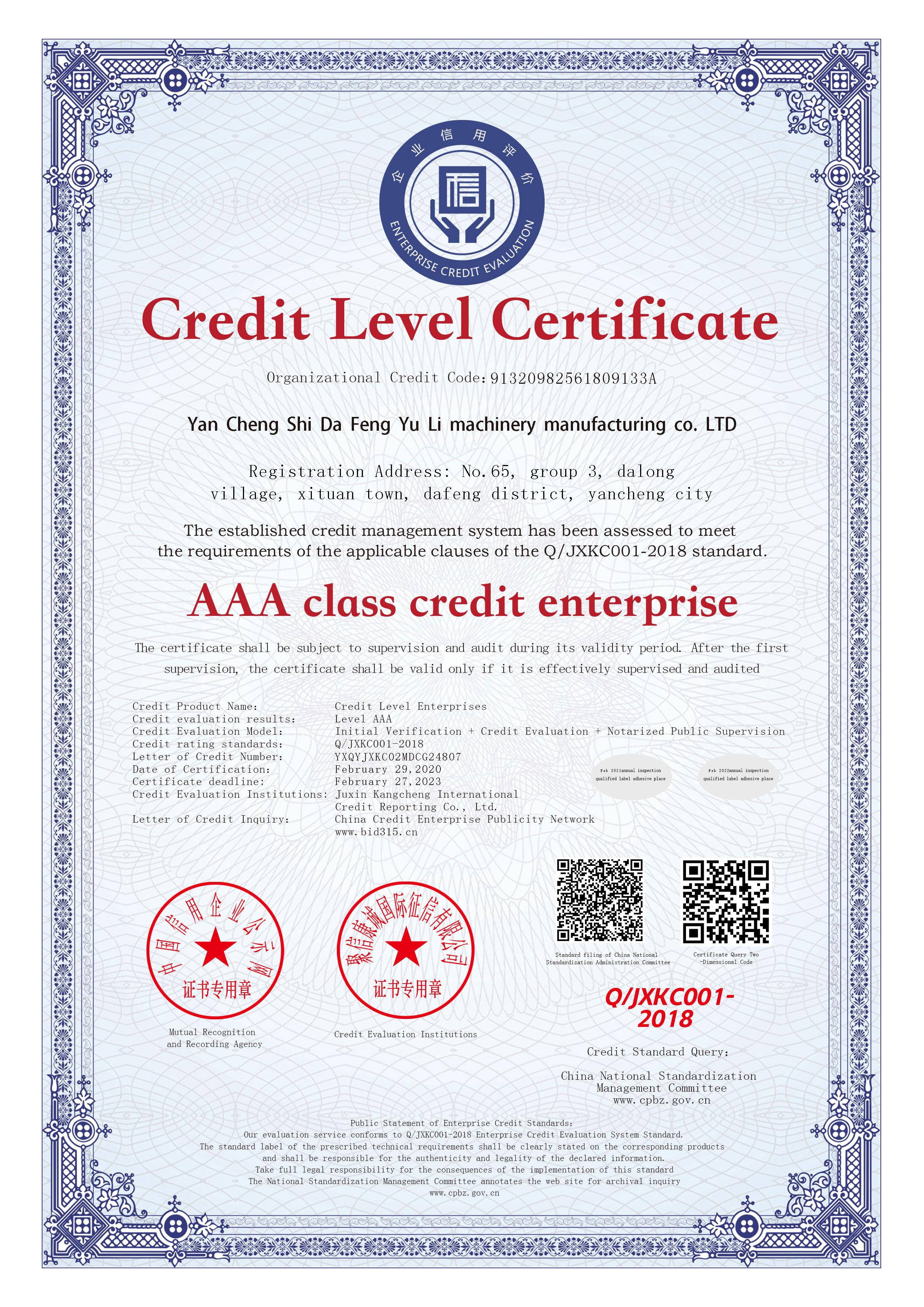 AAA級重合同守信用企業(yè)_中文版