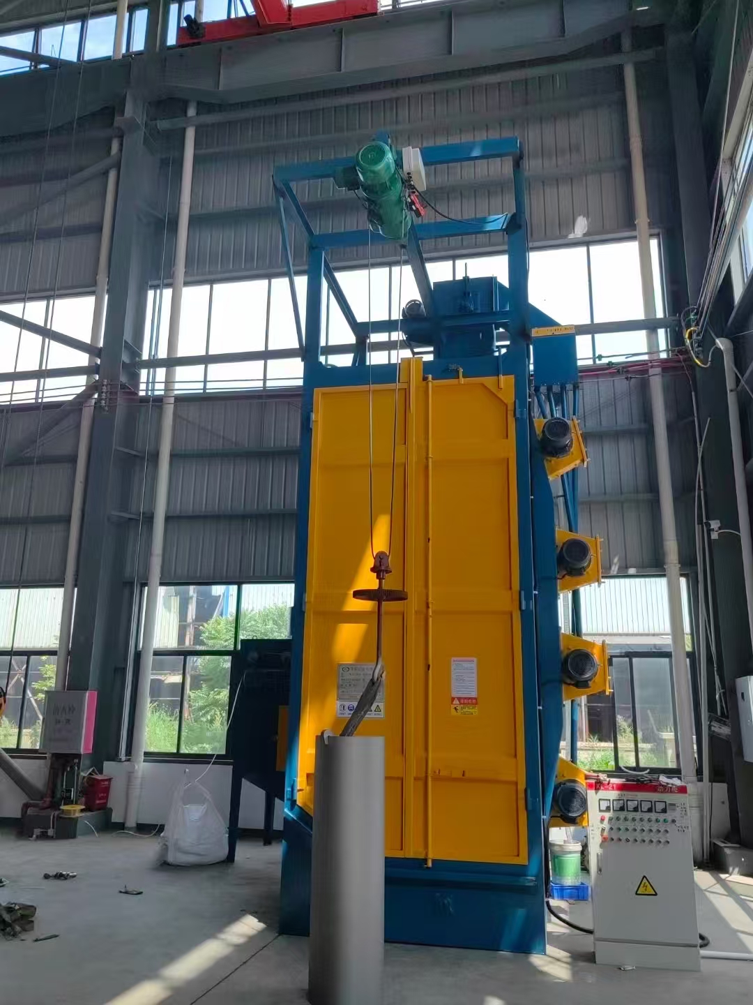 吊鉤式拋丸機(jī)分為單吊鉤和雙吊鉤,吊鉤式拋丸機(jī)由兩個(gè)吊鉤裝載工件交替進(jìn)入拋丸清理室內(nèi)。利用拋丸器將0.2~0.8的彈丸拋向工件的表面,使得工件的表面達(dá)到一定的粗糙度,讓工件變得美觀(guān),或者改變工件的壓應(yīng)力提高壽命。本機(jī)型廣泛應(yīng)用于鑄造、建筑、化工、電機(jī)、機(jī)床等行業(yè)的中、小型鑄、鍛件的表面清理或強(qiáng)化處理。并且本機(jī)型適合于不宜碰撞的細(xì)長(zhǎng)、薄壁件的清理。